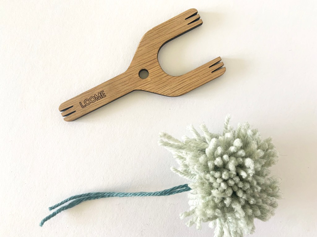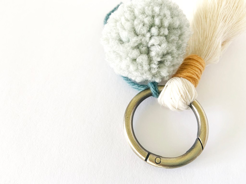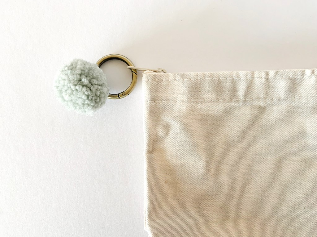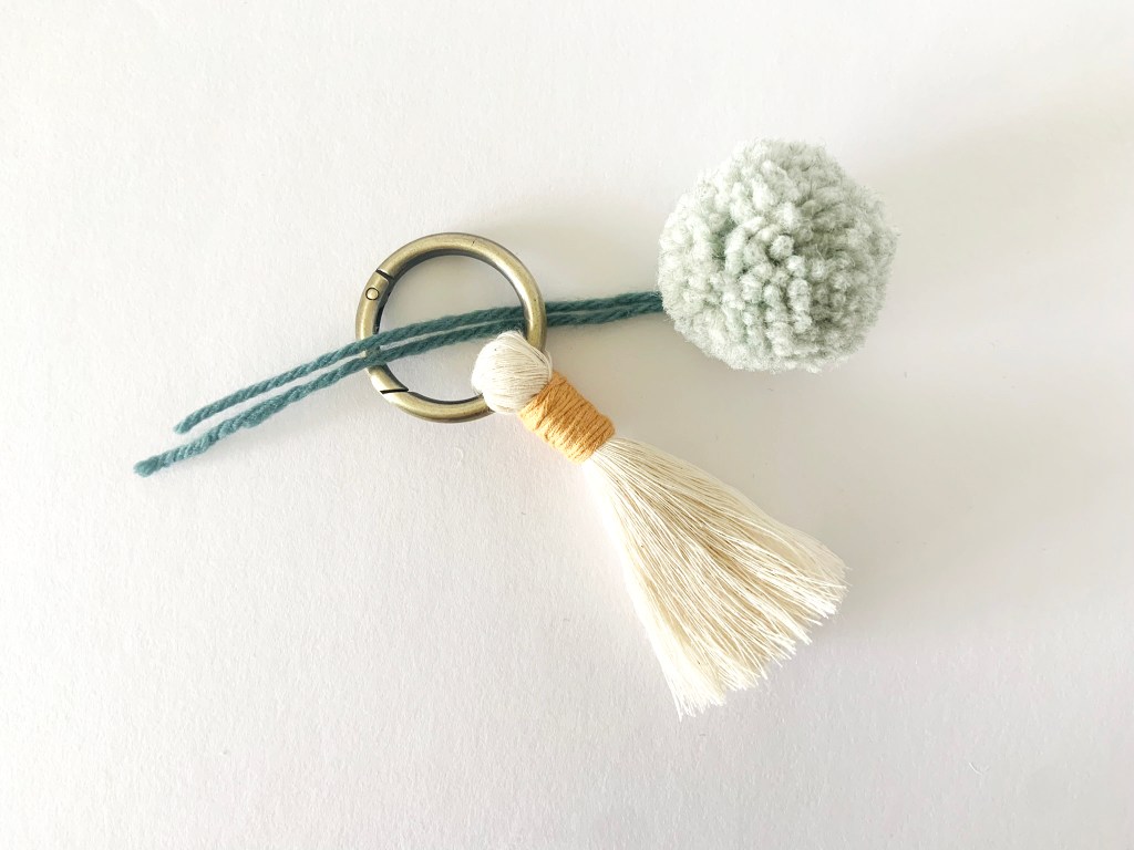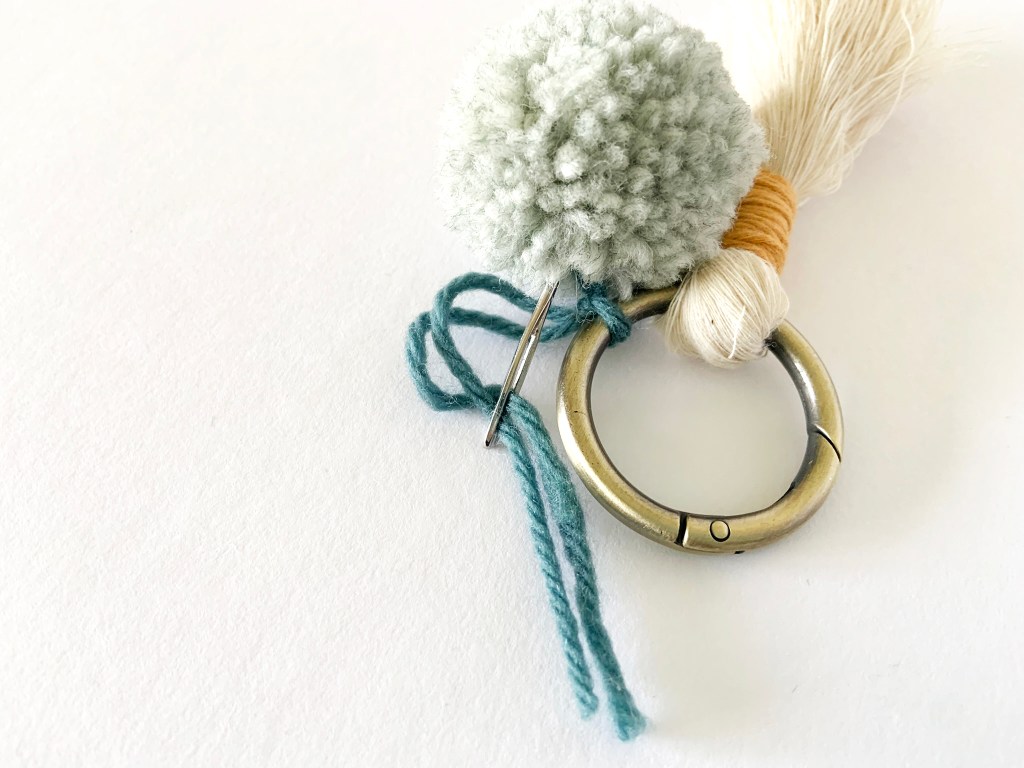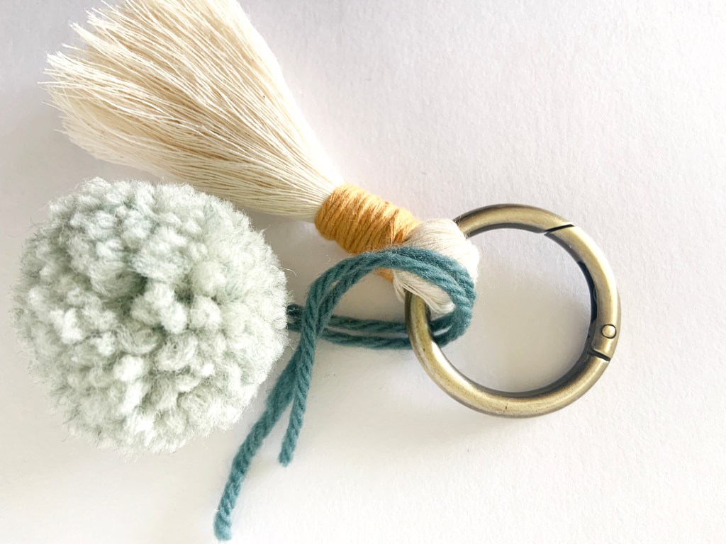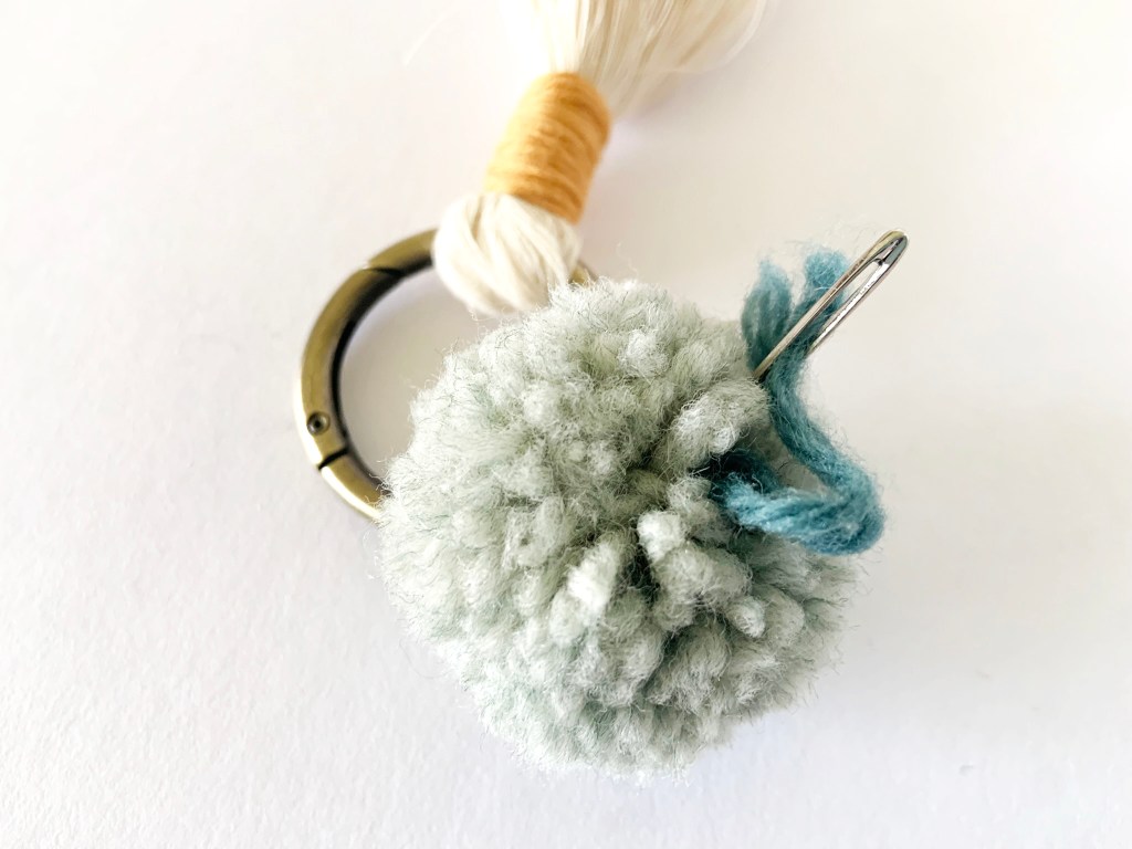 Now you have a fun little pom pom keychain to dress up your tote bag.