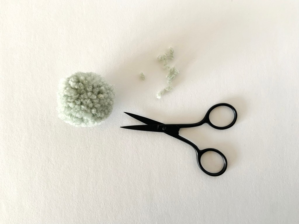 Pull the tails back through the pom pom and snip the ends close to the pom pom so they are hidden.