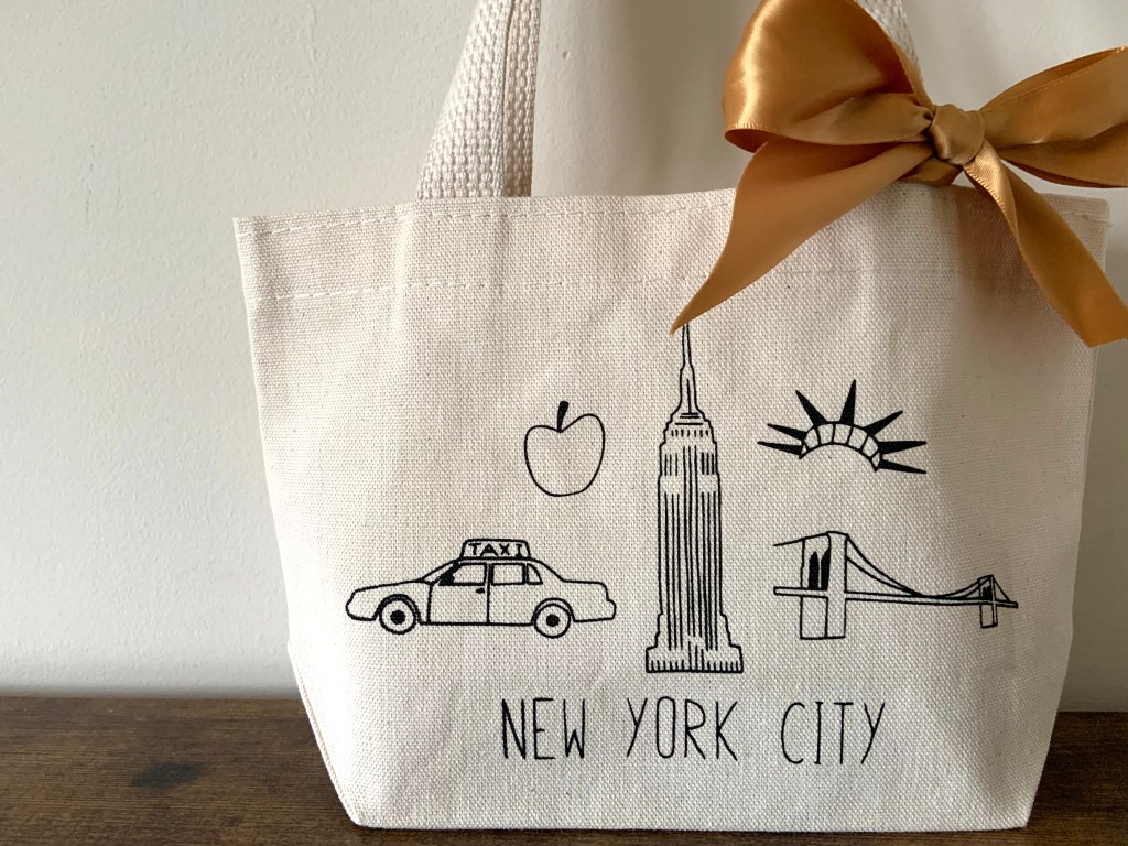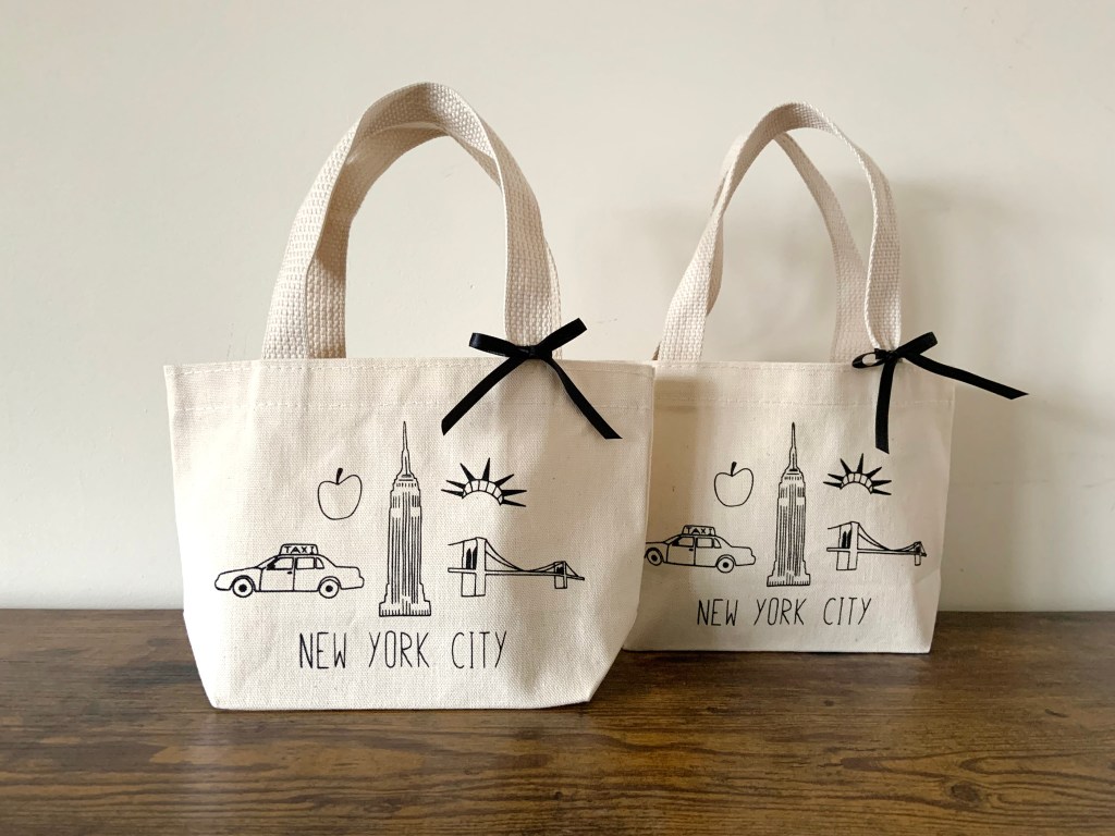 My New York City tote bags are the newest addition to my Etsy shop. More Hand Drawn designs coming soon! Including custom designs where you can add personalized symbols, names, date – perfect for wedding welcome bags.
