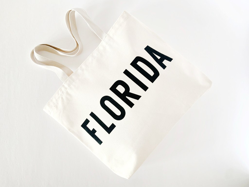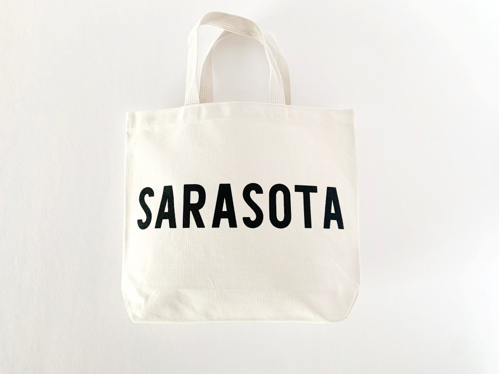 Love these monochromatic Florida and Sarasota tote bags I recently made for The Nutrition Shop in Sarasota, FL. You can order any custom text and color combination on our tote bags for a custom product to offer your customers, your wedding guests as welcome bags, bachelorette party bags, or event favors. They are available on Etsy or Faire.