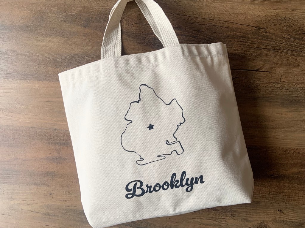 This custom order Brooklyn Outline tote is printed on my Medium tote bag in Charcoal ink. I love the font choice – it made for such a sweet tote bag for my customer 🙂