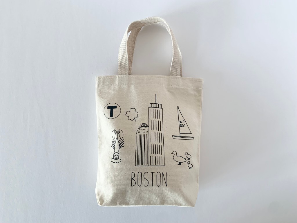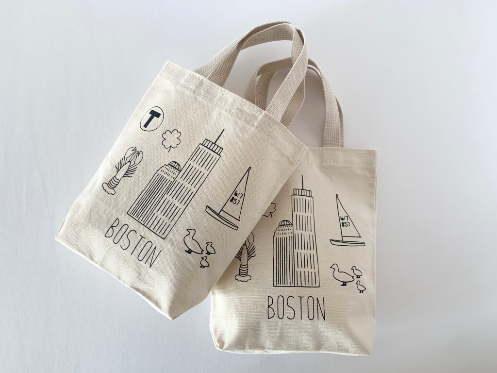 Boston Icon design printed on the small tote bags.